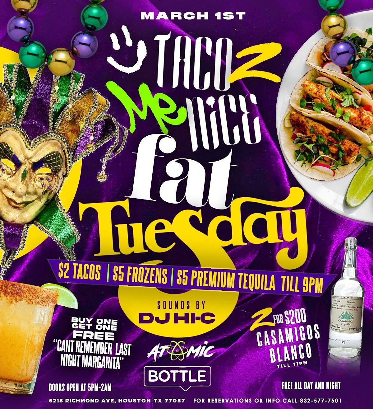 Fat Tuesday Mardi Gras Taco 2 Me Nice Atomic Bottle Atomic Bottle Houston Tx March 1 To March 2